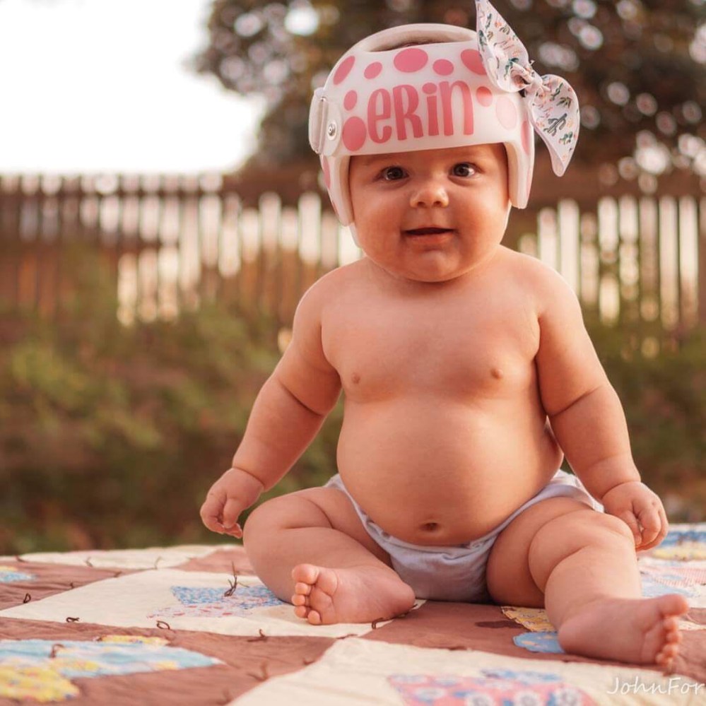 Over the courses the next 3 months we lived the helmet life. Jettie wore a bicycle helmet around for the first 2 weeks because if Sissy had a helmet, she needed one too. Erin was required to wear it 23 hours a day. She was only supposed to have it off for bath time and cleaning. We did everything by the book with the hopes that she would get it off as soon as possible. She had to go back to the doctor every 2 weeks and have her helmet sculpted in order to mold her head. They shaved off certain areas of the helmet in order to encourage her head to grow in some areas and prevent it in others. After 3 months of wearing a helmet 23 hours a day and doctor’s visits every 2 weeks, Erin had a newly shaped head.